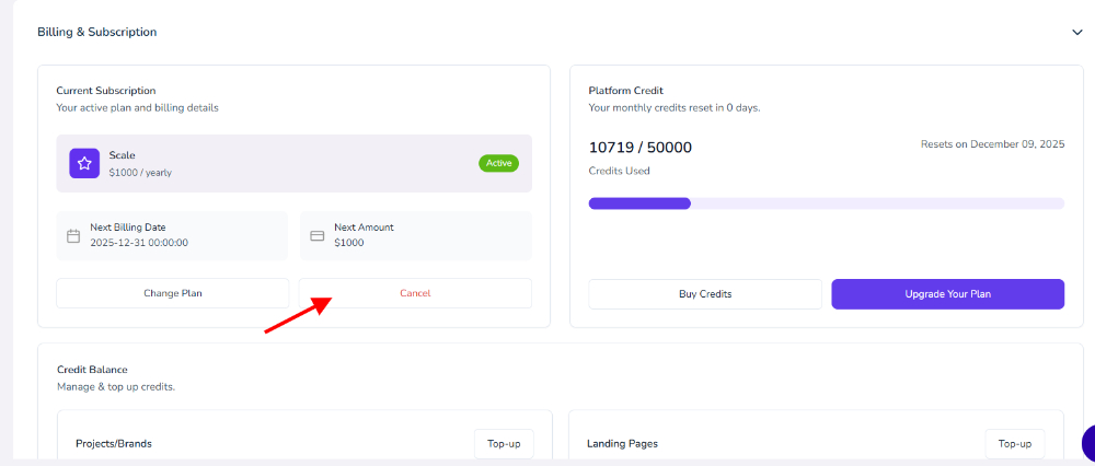 PS. Instead of outright cancellation, you can decide to "Freeze" your account for a small fee by clicking on the "Click Here To Freeze" button. This way, your subscription is paused but we keep your account and all its assets intact till whenever you want to resume usage.