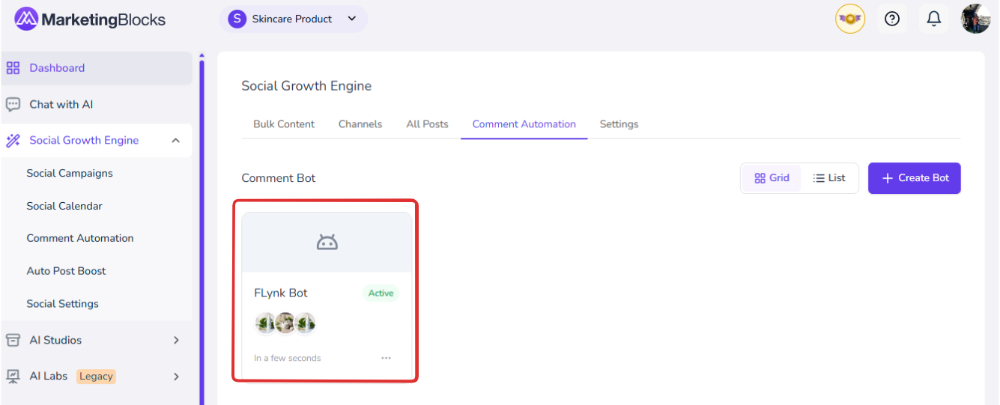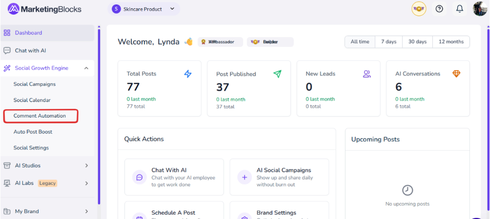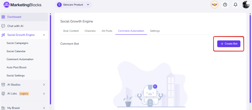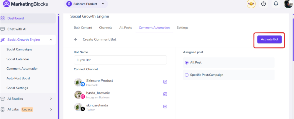 An AI comment bot in a social spark tool to enhance user engagement and interaction on social media platforms, and also help you to view the statistics of your post.