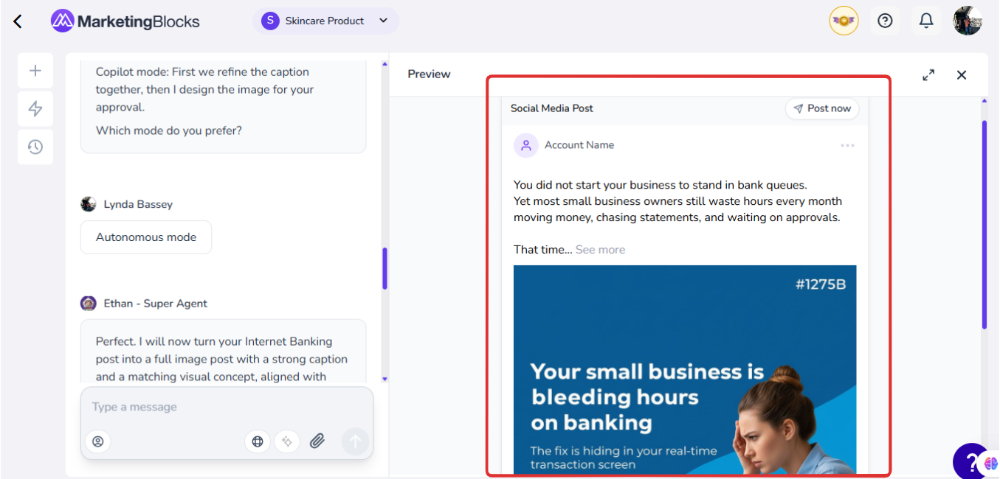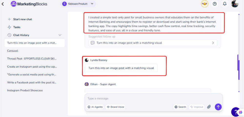 Step 6: The text will be generated. You can turn it into an Image Post.