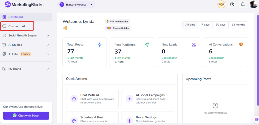 Step 1: From your dashboard, kindly click "Chat with AI"