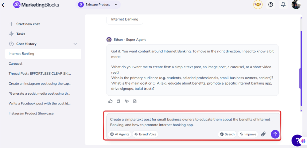 If you need further assistance, kindly use the chat widget at the bottom-right corner of this page or email our support desk (support@marketingblocks.ai) for prompt service.